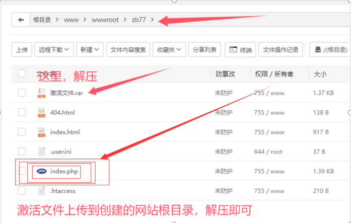 上传激活文件到刚刚搭建的站点解压